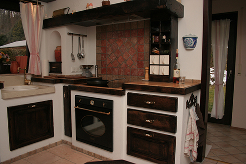 Mediterrane Landhausküchen werden überwiegend in Eiche gefertigt und mit Acryllack gefärbt. Anschließend wird die Front, je nach Oberflächenwunsch des Kunden, mit Antiklack (Patina) von Hand patiniert und abschließend mit Klarlack versiegelt. Ein wichtiger Punkt in unserer Philosophie ist das Patinieren, damit diese antik anmutenden Oberflächen auch möglichst authentisch sind. Der Eiche wird auf diesem Weg der Look früherer Tage verliehen. Holzmaserung und Gebrauchsspuren (Löcher, Risse und Einkerbungen) werden nach Kundenwunsch berücksichtigt und mit viel Liebe zum Detail erstellt. In den Ecken verbleibt die, meist dunkler als der Hauptfarbton, gewählte Patina ganz bewusst. Die Willkür und die Handarbeit sind es, die somit jede Villa Medici Küche einzigartig macht. Keine Front gleicht der anderen und keine Küche ist wie die andere. Diese Philosophie der mediterranen Wohnkultur ist es, die wir seit 1999 verkörpern und mit der wir unser anspruchsvolles Publikum seit jeher begeistern.